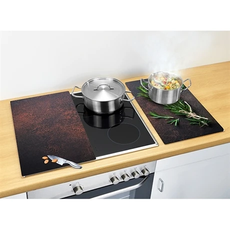 Agrémenté d’une impression réaliste, sur un fond ardoise, cet ustensile protège de la poussière, des projections, des rayures toutes les plaques : induction, vitrocéramiques, électriques ou gaz.