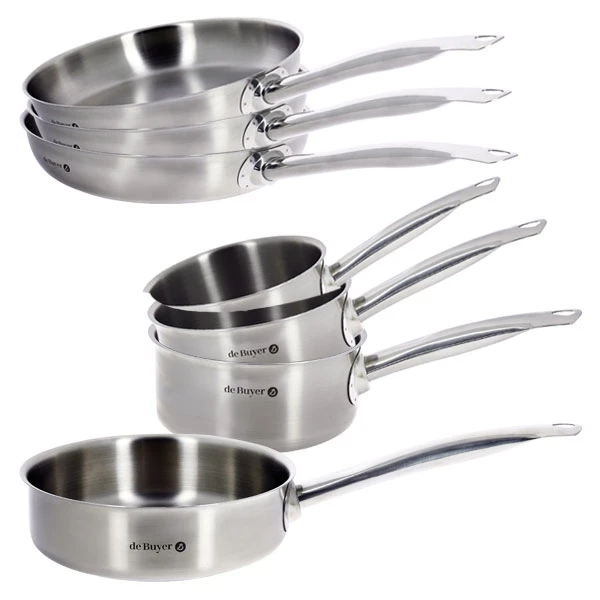 Trois casseroles Prim’Appety De Buyer sont également présentes dans cette batterie : une de 16 cm, une de 18 cm et une de 20 cm. Ces ustensiles sont équipés d’un fond assurant une excellente répartition de la chaleur lors de la cuisson, pour éviter les pics de chaleur. Avec une conception sans soudures et un inox haute qualité, ces casseroles assurent une très grande durabilité. En dernier ustensile, une sauteuse à bord droit 24 cm Prim’Appety De Buyer est également incluse dans la batterie Prim’Appety, pour saisir les viandes, poissons et volailles.