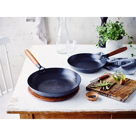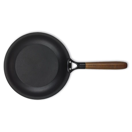 Equipée d’un manche en bois d’acacia, la poêle a de bonnes propriétés antibactériennes.