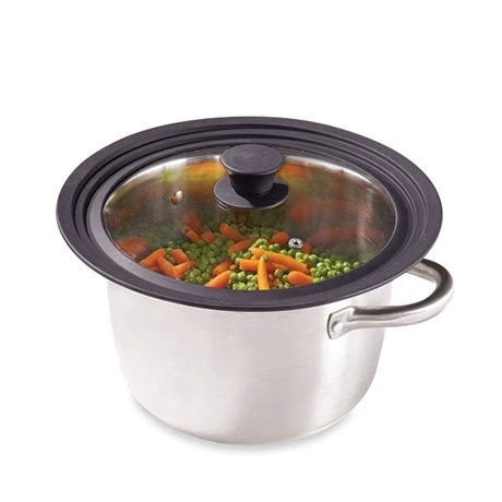 Son contour en silicone en escalier permet de s’adapter parfaitement aux différents diamètres en assurant une étanchéité parfaite. En verre, le couvercle permet de surveiller vos préparations facilement tout au long de la cuisson. Pratique, le bouton est en silicone pour pouvoir le saisir sans se brûler.