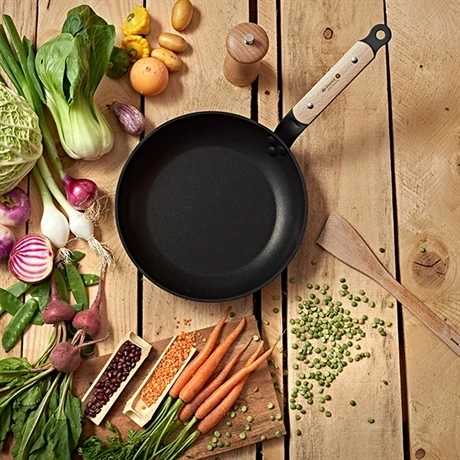 Dotée d’un manche ergonomique en bois de hêtre, facile à prendre en main pour la manipuler en toute sécurité, la poêle 32 cm choc B Bois De Buyer est revêtue pour assurer des cuissons saines, qui n’adhèrent pas, et pour des nettoyages faciles.