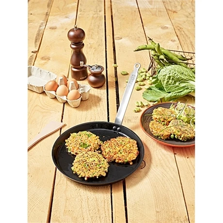 Avec cette Poêle à crêpe de 30 cm de diamètre, réalisez de délicieuses crêpes. Avec son corps en aluminium forgée, qui garantie une montée progressive et uniforme de la température. Son revêtement en noire mat est très résistant. Cuisinez plus sainement en utilisant moins de matières grasses. Avec son revêtement renforcé sur base dure, elle permet de conserver plus longtemps ses propriétés antiadhésives (50% de durée de vie en plus). En aluminium forgé et avec sa queue rivetée en inox, cette poêle saura résister aux multiples utilisations.