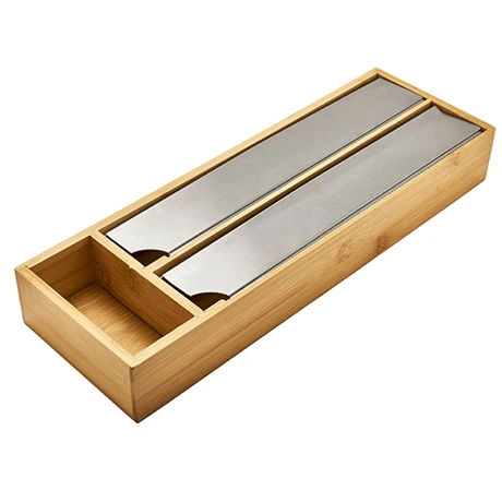 Pradel France a imaginé le dérouleur de cuisine pour tiroirs qui n’encombre pas votre plan de travail. Ingénieuse, cette petite boite en bambou a 2 emplacements pour accueillir les rouleaux que vous utilisez le plus souvent en cuisine. Les lames en acier inoxydable découpent vos papiers et films alimentaires à la longueur de votre choix sans les déchirer. Fini la perte de temps pour retrouver le début de votre film alimentaire que vous avez mal coupé la fois précédente !
