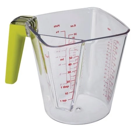 Ce Verre mesureur gradué 2 en 1 de Joseph Joseph contient 2 compartiments permettant de mesurer précisément des liquides de 5ml à 1L. Maniable, sa forme carré et sa poignée ergonomique permettent de verser facilement, et ses graduations faciles à lire permettent de faire une mesure précise à tout moment.