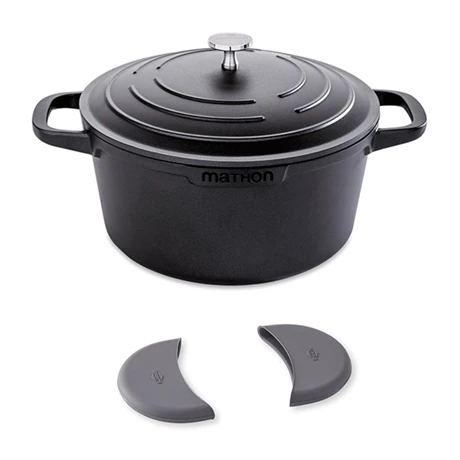 Soyez équipé comme un chef, avec ce lot « cocotte légère ronde en fonte d’aluminium Mathon et 2 maniques en silicone« . Ne vous brûlez plus les mains en attrapant votre cocotte, ce lot vous fournit tout le nécessaire pour cuisiner de bons plats mijotés en toute sécurité.
