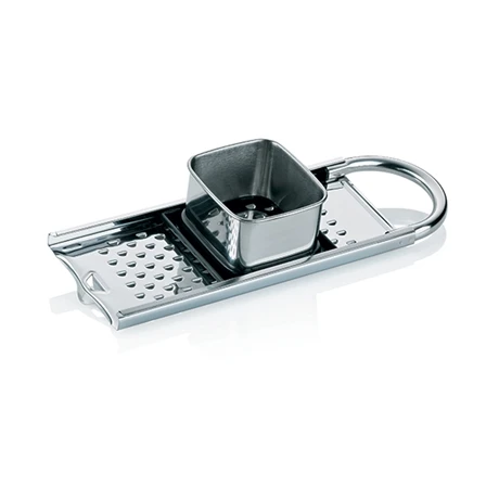 Conçue en inox 18/10, cette mandoline est constituée de 2 parties indépendantes : la râpe qui dispose de perforations épaisses pour obtenir des spaetzles longs et le réservoir à pâte.
