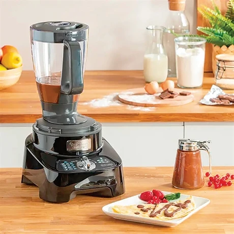 D’une belle capacité de 3 L pour le bol et de 2 L pour le blender, ce robot double force 1000 W noir réalise toutes les recettes : il râpe, mélange, mixe, pétrit, hache, fouette, émulsionne…
