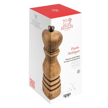 La collection Antique propose les moulins emblématiques et historiques de Peugeot avec une finition antiquaire : logo marqué au fer à chaud et bois issu de fôrets françaises, vieilli et patiné à la main. Cette collection met donc en valeur le charme et la patine du temps, mais s’inscrit également parfaitement dans des univers très contemporains.
